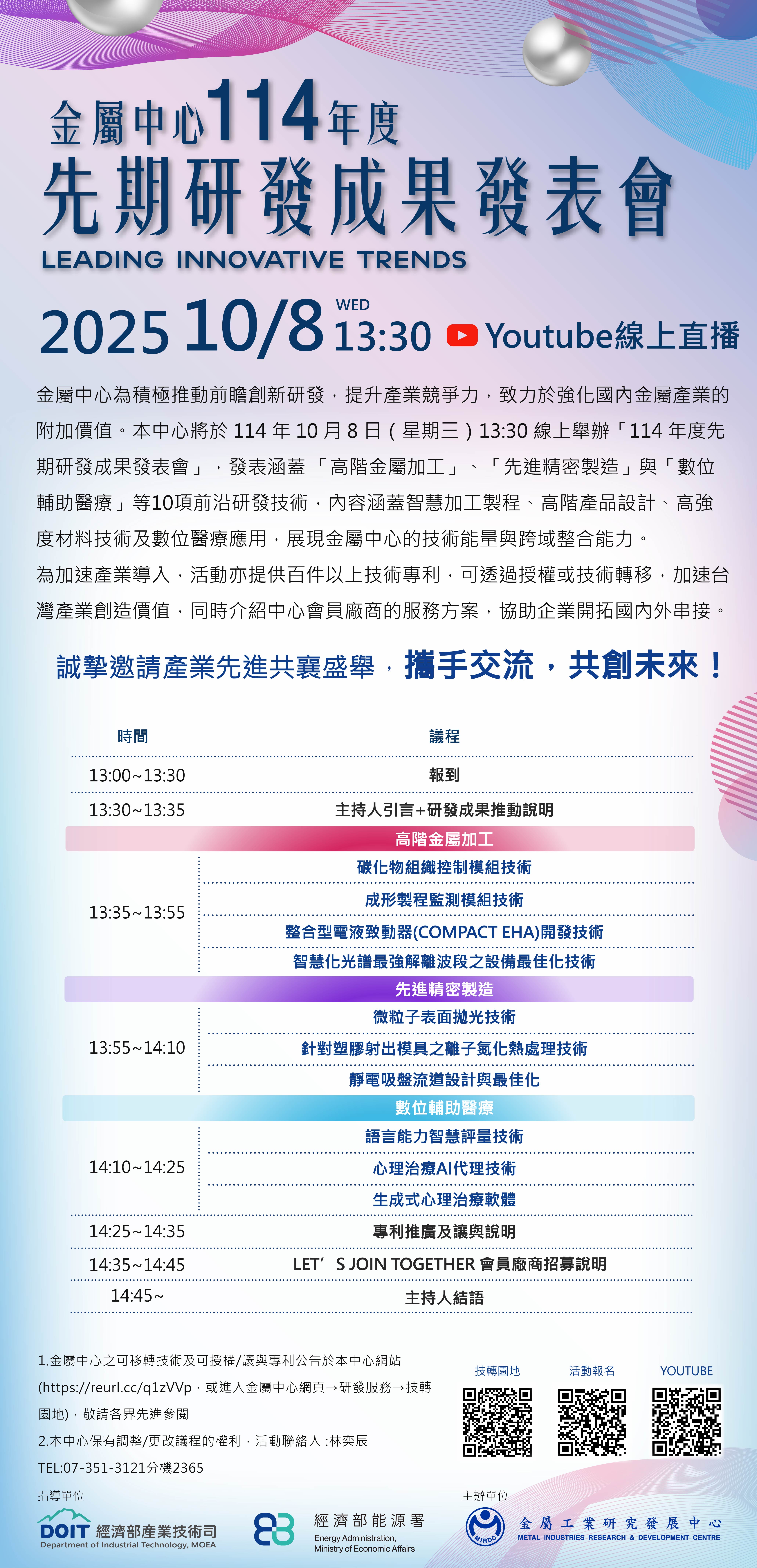 資通安全政策及目標 / 網站資料開放宣告 / 網站錯誤訊息投訴 / 媒體資訊揭露彙整表 / 113年度金屬中心決算書 / 115年金屬中心預算書 / 108年通案免除利益迴避之限制 /113年度監察人報告書/113年財務報表暨會計師查核報告 /財團法人金屬工業研究發展中心反詐騙宣導