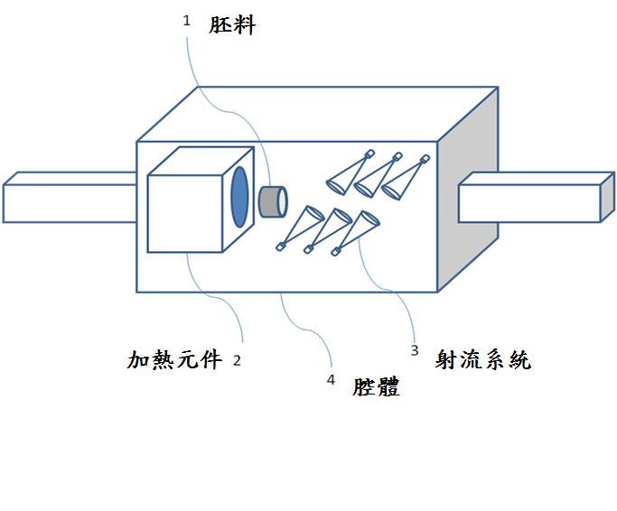 技術現況敘述 藉由射流冷卻的方式能夠有效地將鋼材(SS400、S50C及SCM440等)強度提升50~100%以上,並可利用控制冷卻參數的方式製造出不同強度及硬度鋼材。