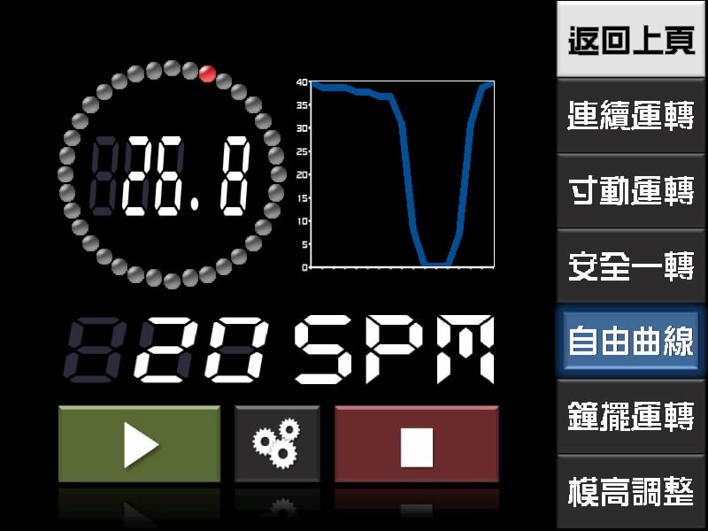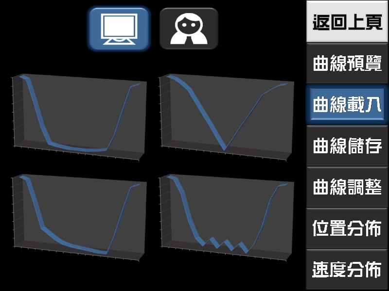 技術規格 1.適用於各種噸數之伺服沖床 2.具圖形化且簡易的自由曲線設定功能