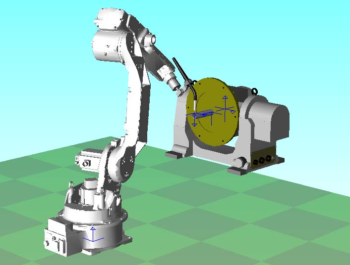 所需之主要軟硬體設備 機器人系統(Robot)、外部軸件(轉盤)、一組異型管件快速定位承接頭並搭配Robot模擬軟體。