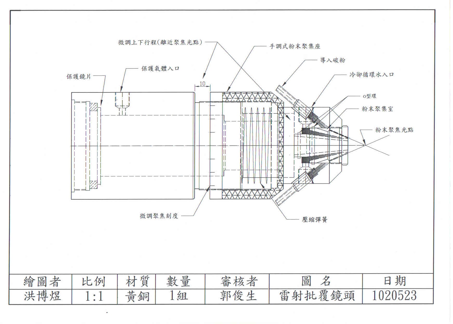 技術現況敘述 目前雷射加工製程技術主要有切割、銲接、熱處理及銲覆等應用,其中銲接、熱處理及銲覆的雷射加工機,可使用相同的雷射加工機,通常依加工特性來選用其專用的周邊設備及加工模組,亦即雷射銲覆加工設備選用專用雷射銲覆鏡頭模組及送粉裝置,整套設備費用動輒50萬歐元,一般國外雷射加工設備公司,不會也不願意提供一機多用途的設計給客戶。但是如果已有雷射銲接設備及鏡頭模組,想要擴充具有雷射銲覆的功能,在降低成本的考量下,就必須自行研發設計具體可用的雷射銲覆鏡頭模組及送粉裝置來配合。亦即在雷射銲接的鏡頭模組下,再設計加入同軸送粉機構模組,即可達到雷射表面銲覆的功用。