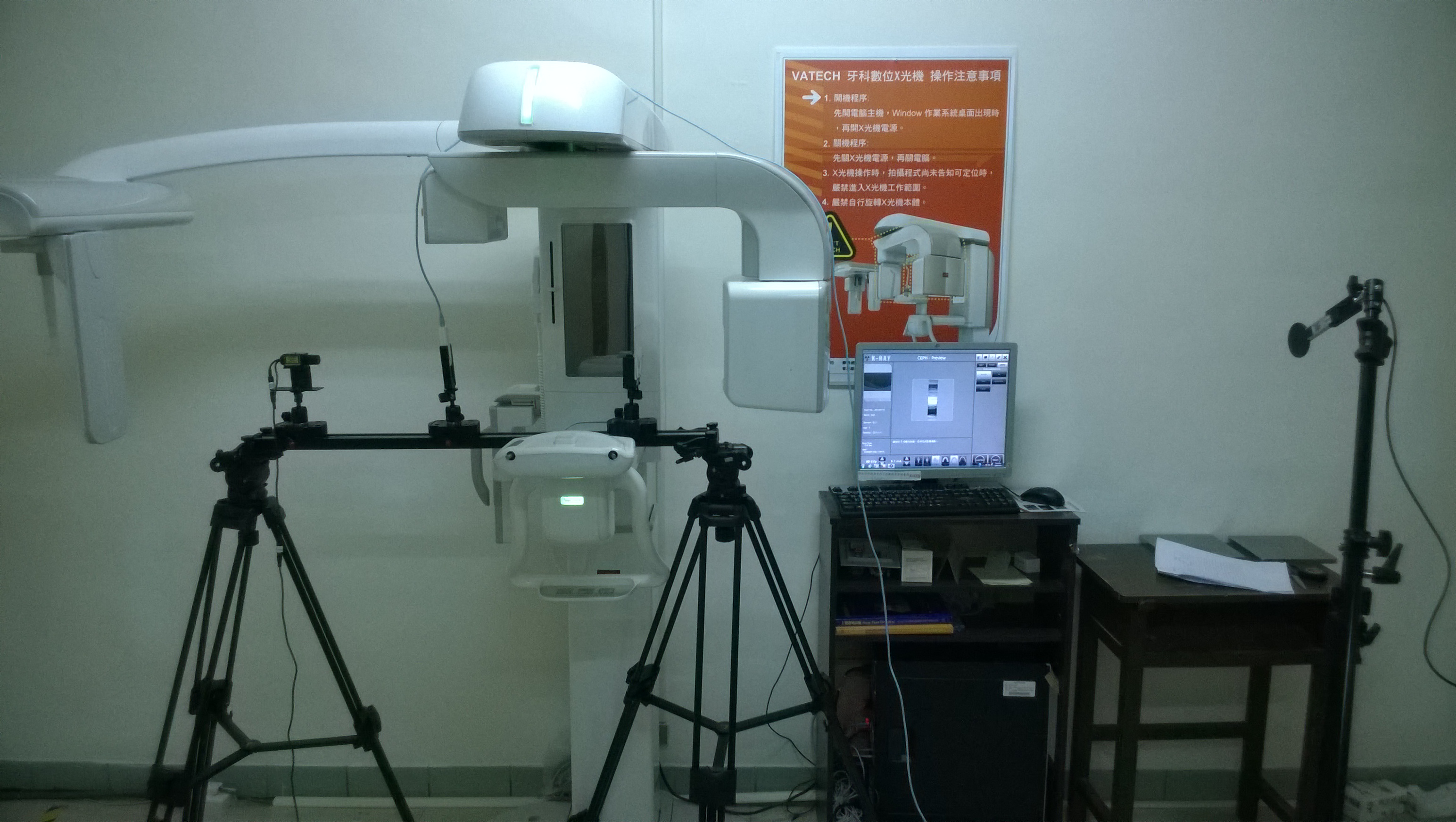 技術現況敘述 1.目前具有原能會認可之輻防室及輻射安全檢測項目所需之各式設備器材。 2.完成9項醫用X光影像診斷設備檢測標準流程建置,並申請TAF認證。 (1)半值層量測 (2)總濾過量測 (3)固有濾過量測 (4)附加濾片量測 (5)洩漏輻射量測 (6)雜散輻射量測 (7)管電壓量測 (8)管電流量測 (9)管電流時間積量測