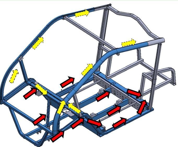 技術現況敘述 以底盤入力量測結合多體動力學(MBD)分析,確認結構力傳遞路徑,優化Space Frame結構設計。