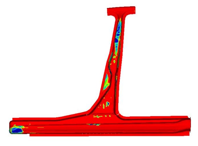 技術現況敘述 1.車體側結構輕量高強度鋼化之設計及分析技術,於設計時,同時考慮製程、材料、幾何形貌及應用位置,進行最佳化輕量化設計 2.超高強度鋼熱沖壓製程技術開發應用,可應用於車體結構件A/B-pillar,Side-sill,Bumper,cross member等