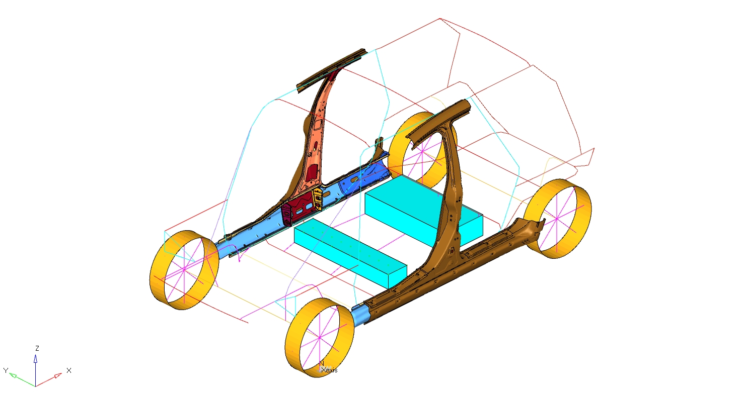 技術規格 1.車體側結構輕量高強度鋼化設計及分析,強度符合FMVSS碰撞規範 2.整合結構設計分析技術,輕量化效益:10%~20% 3.超高強度鋼熱沖壓成形製程技術應用,鋼材1,400MPa以上等級,厚度T1.0mm~T1.6mm