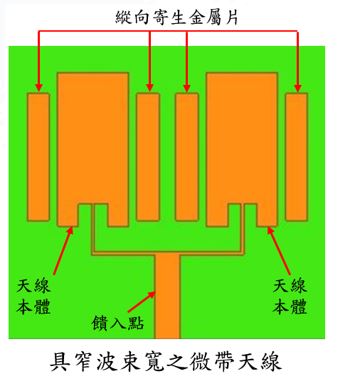 技術現況敘述 一般微帶天線的設計都是具有寬半功率頻寬束的特性存在,所以當要使用於高指向性的應用時,往往就會無法達到這項需求,所以本專利就是使用一種方法,來達到微帶天線具有窄半功率頻寬束的特性,藉以應用在需要有高指向性的微帶線天線的需求。