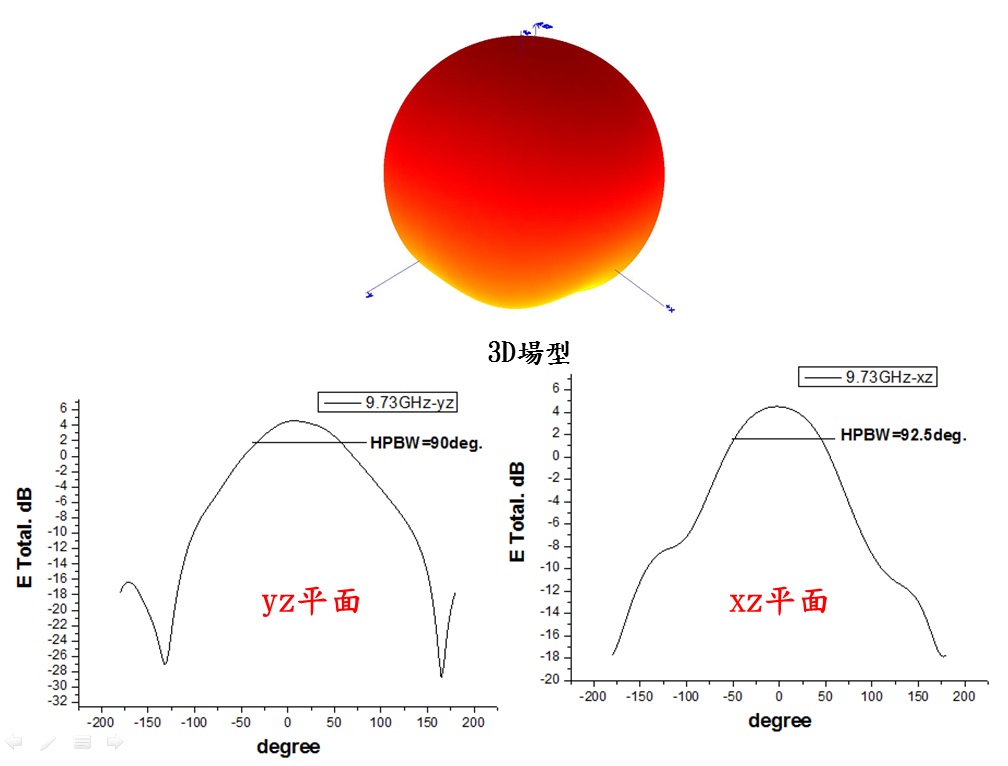 技術規格 xz平面於半功率波束寬度(HPBW)之電場範圍角度與yz平面於半功率波束寬度(HPBW)之電場範圍角度相差低於5度
