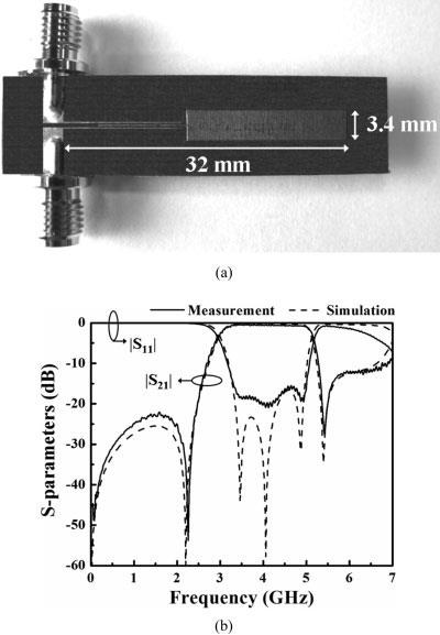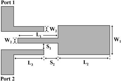 技術規格 本技術先針對非對稱式步階式阻抗共振器進行共振模態之分析,根據所分析之結果設計一簡單的超寬頻帶通濾波器(Ultra-WideBand filter, UWB filter),該架構僅需一組非對稱式步階式阻抗共振器,結合指叉式耦合饋入埠即可激發超寬頻帶通濾波器響應;接著根據該分析結果,本研究再以該共振器架構合成一組具有抑制5.2 GHz訊號干擾之超寬頻帶通濾波器,該濾波器採用相同架構,並以分支傳輸方式形成兩組共振器及訊號傳輸路徑,有效形成3.1-5.2 GHz及6.1-10.6 GHz之雙寬頻帶通濾波器響應。