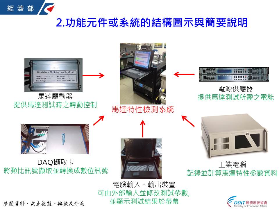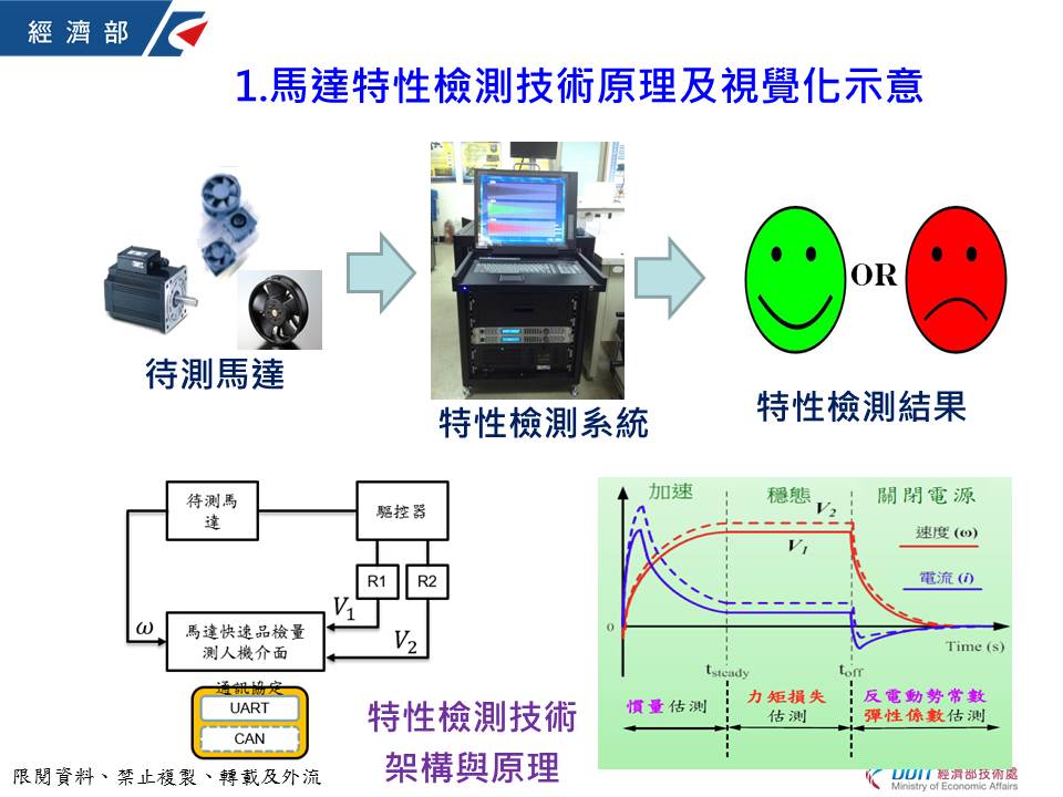 技術現況敘述 國外之馬達製造大廠,多已發展馬達檢測設備,並制定相關診斷流程;但國內中小企業馬達廠商,由於研發經費有限且檢測技術能量仍有缺口,在國內馬達製造廠內目前尚未普遍建立相關檢測與診斷之技術,亦無標準的診斷流程,因此在產品設計初期,需以傳統量測方式獲得馬達特性,若應用本技術於研發及製造過程,則可大幅降低量測的時間與工序。