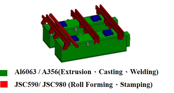 可應用範圍 1.電動化車輛動力電池系統殼體構件。 2.車輛底盤結構鋁化構件。