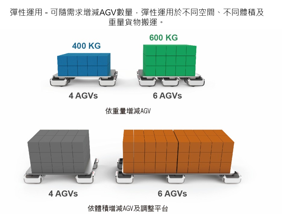 技術規格 Payload 300 kg- 600kg Weight (approx.) <100 kg - 200kg Number of wheels 4 Drive power 4 kW (1kW*4) Drive concept Electrical Travel speed unladen 0.1 to 10 km/h Positioning accuracy (standard) ±5 mm High-performance lead batteries 24V 48V @ 50Ah Voltage/power supply for charger 24V 48V @ 12A Operating temperature -10 to +60 °C Protection class of vehicle IP 54