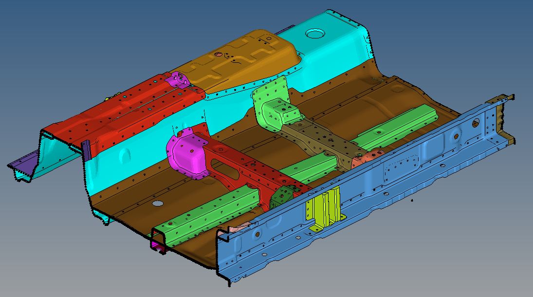 技術現況敘述 整車廠為了加速開發時程以及減少重新開發零件之成本,而開始導入模組化設計方法,從乘客艙底板模組至前艙底盤模組等,不斷地提高共用比例,以有效降研發成本;並因應更嚴苛的安全評價,提高高強度鋼材應用比例,達到輕量且高強度平台。