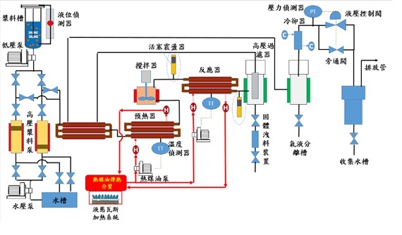 技術規格 開發進料量30L/hr、設計溫度400℃、設計壓力20MPa之連續式水熱液化系統技術