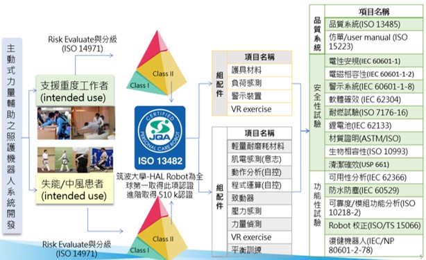 市場(產品/服務)潛力預估 復健機器人或機械臂應用於臨床時,因電控系統作用機制、輸入功能需求、保護裝置、線路馬達等設計,將整機系統整合後,輸出之運動功能、訊號擷取功能、回饋復健模組及帶動患者(使用者)復健或動作,極度重視人因工程操作等細節以及整機系統之安全性,連帶帶動復健之功能確效皆非常重要;透過穿戴式復健機器人訊號回饋之測試驗證方法,有效先行確效此裝置之安全性;可套用至任何機器人系統。
