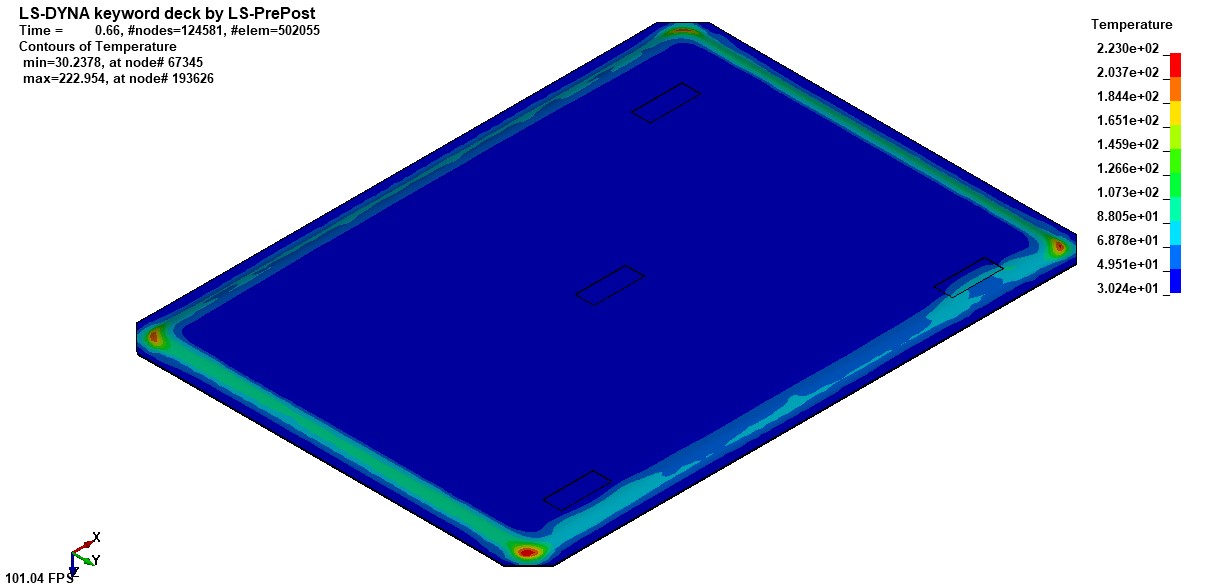 技術現況敘述 國內業者尚未導入混成板材材料分層熱成形模擬分析技術, 金屬中心111年研究結果,混成板材熱成形模擬分析複材分層減薄率預測與回彈量預測準確度準確度達80%以上