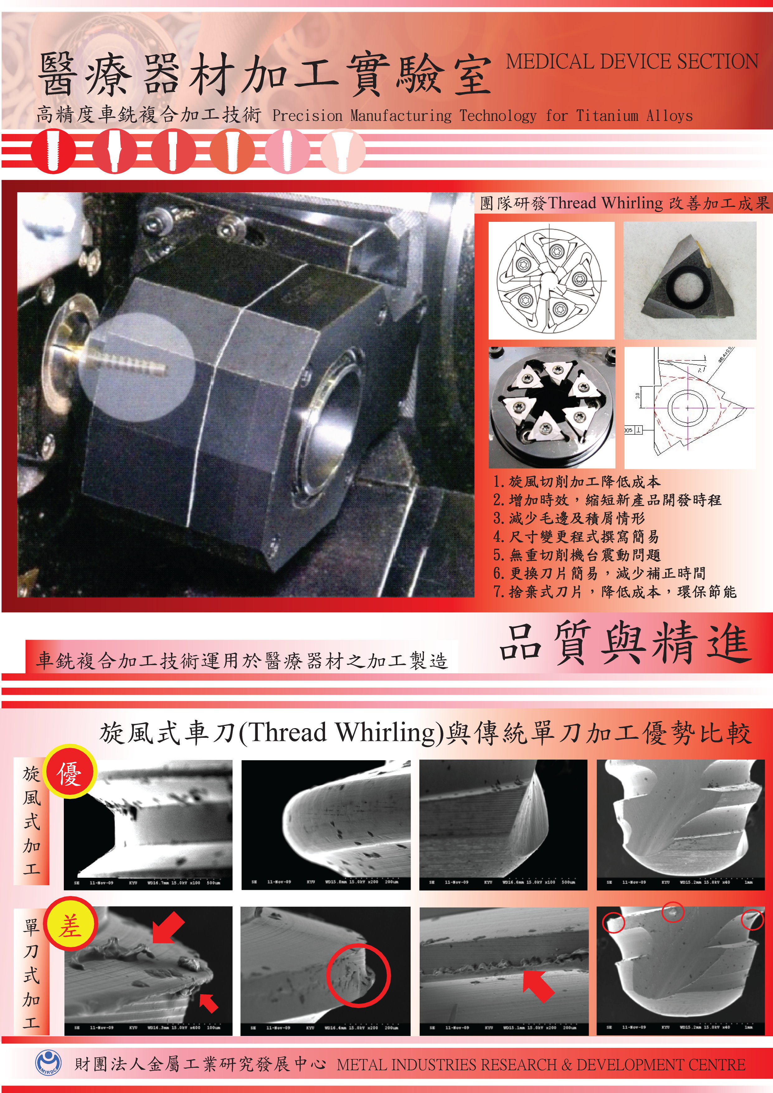 技術現況敘述 人工牙根本身是個精密且技術層次複雜,與其他製造產業有所差異,在考慮人體安全條件的前提下,透過動物試驗及臨床試驗逐步的驗證並經過衛生組織審核及認可,才能販賣使用,因此多數廠商都受到法規障礙所限制,特別是在各國嚴格的法律規範下,使開發廠商透過專利授權及產品行銷過程,保持長期且高額的寡佔利潤,因此中心針對人工牙根產品研發成果,將其人工人工牙根的規範在研發過程中一併考量。並可依據廠商及醫師臨床需求提供客製化之醫療器材設計。